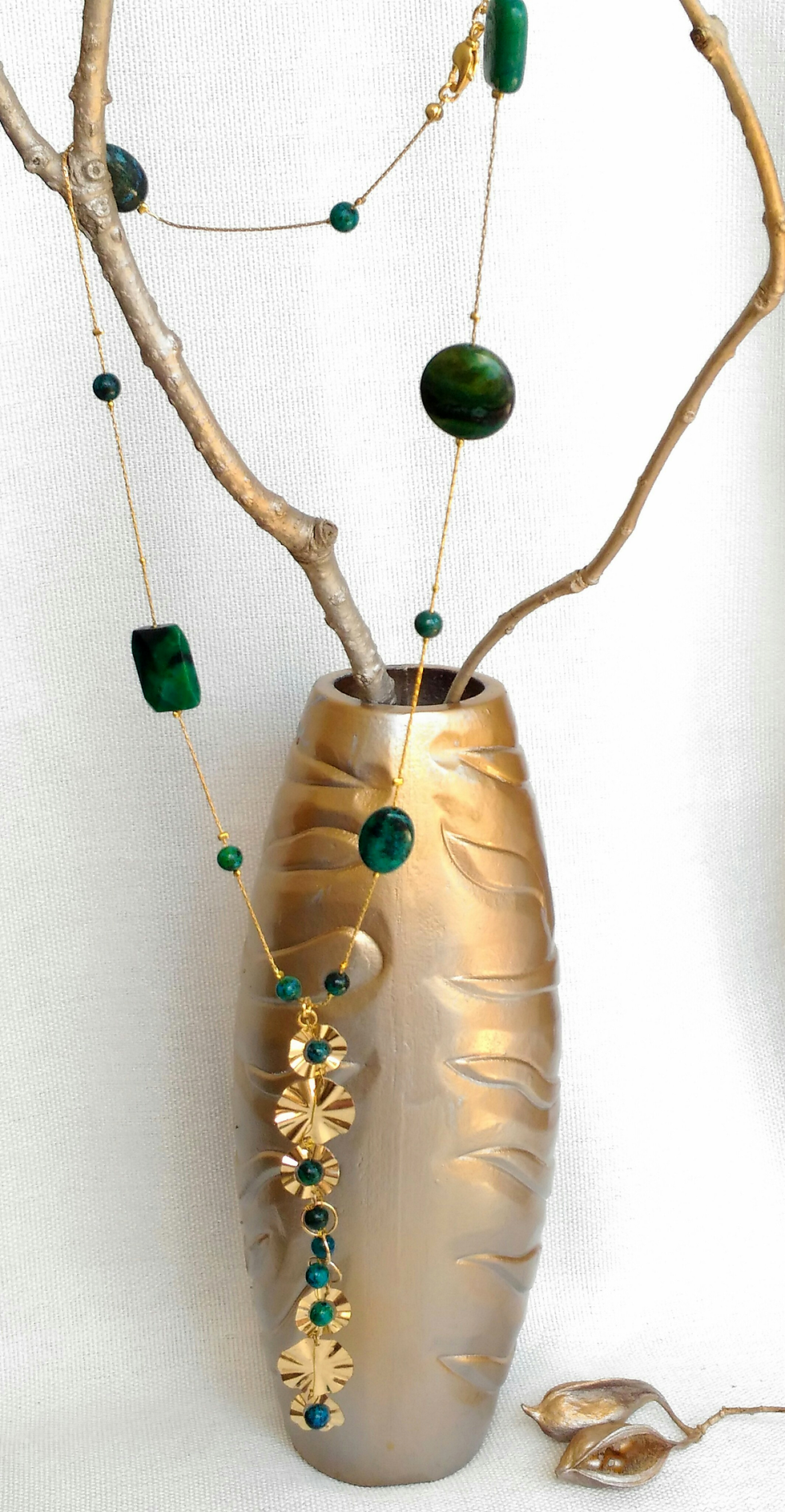 Удивительное мистическое колье с индийской яшмой и розовым кварцем.
