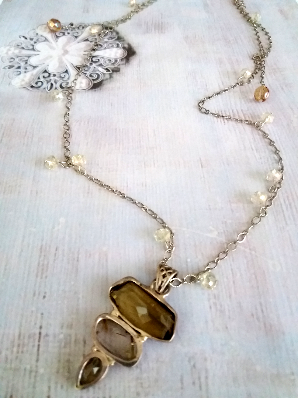 Изящный чокер из богемского стекла с кулоном моркой камушек.